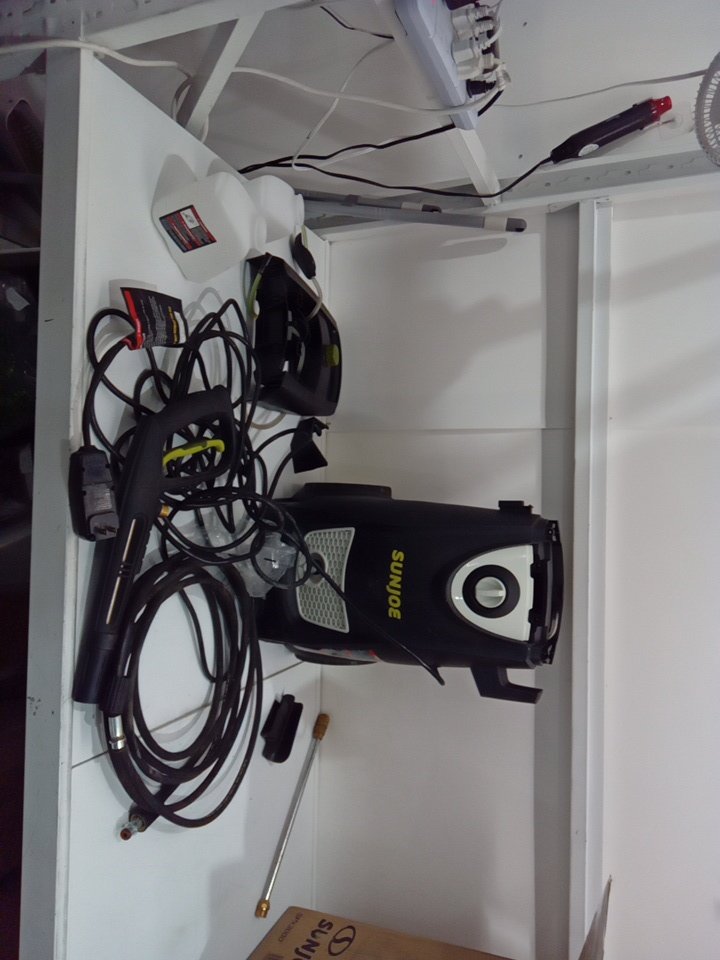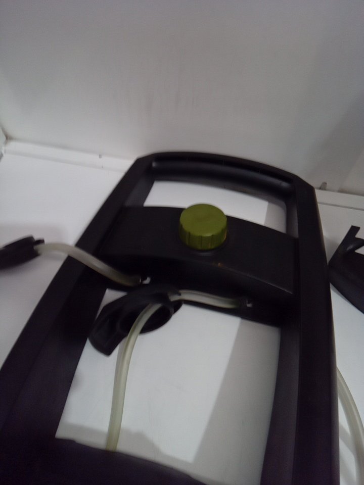 tested for power. appears to have some dust and dirt on the wheels and whole front of the pressure washer. there is some water in the tank. please note that there is some soap in the hoses (see photo)