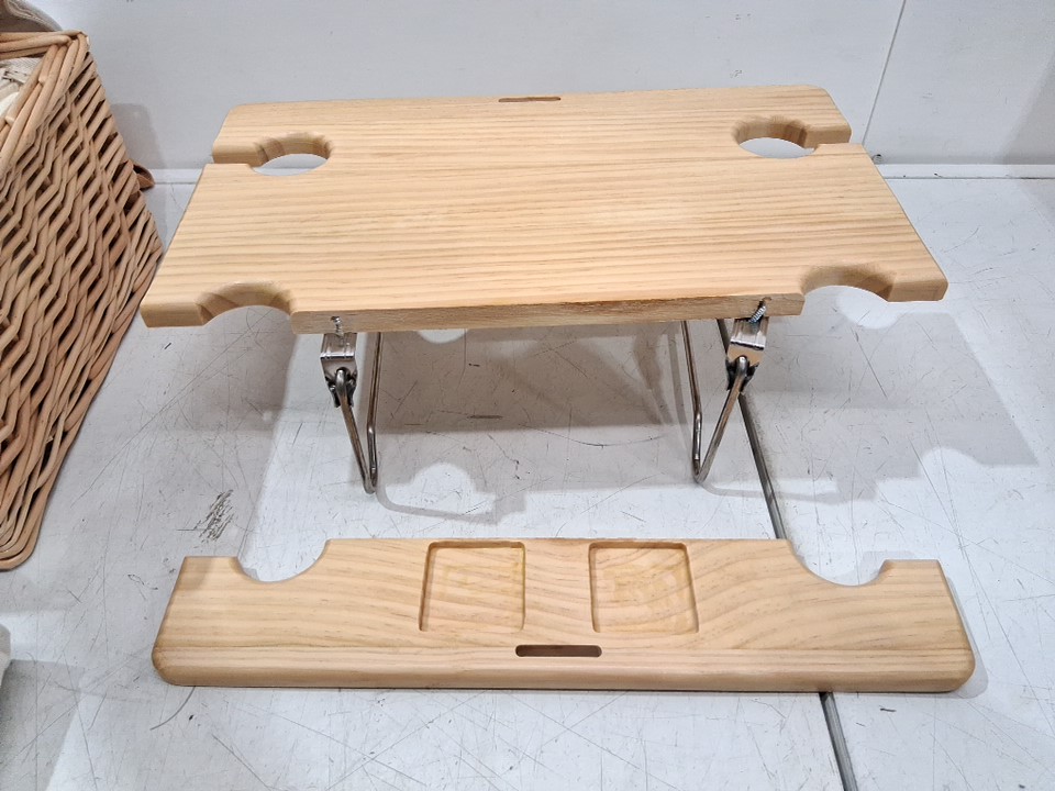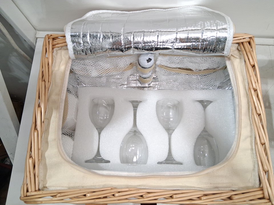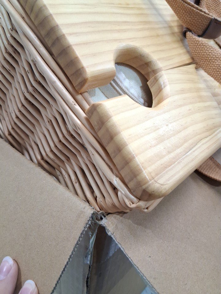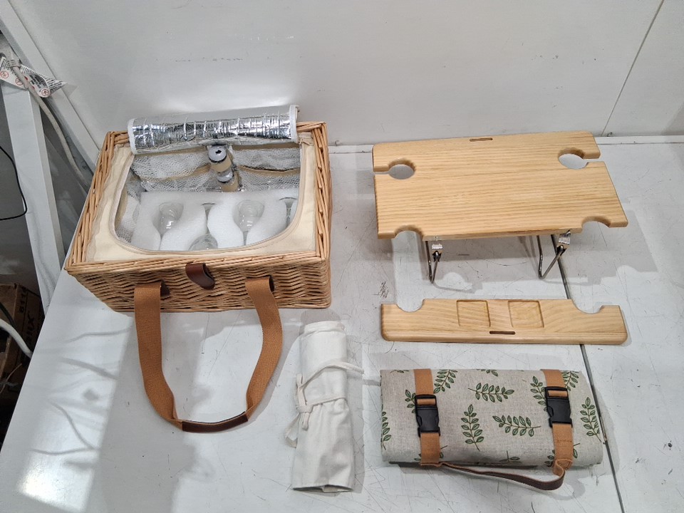 the table is broken and there is a small fracture on the side of the picnic basket - see photos