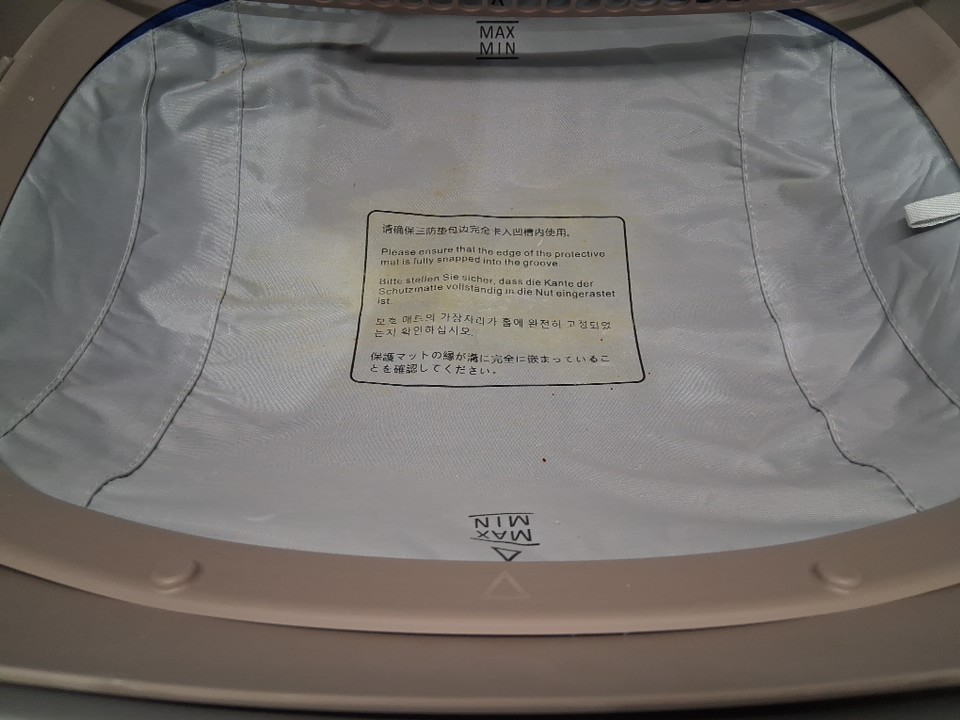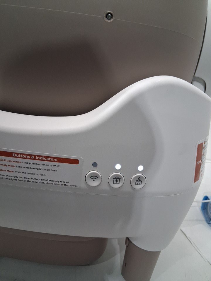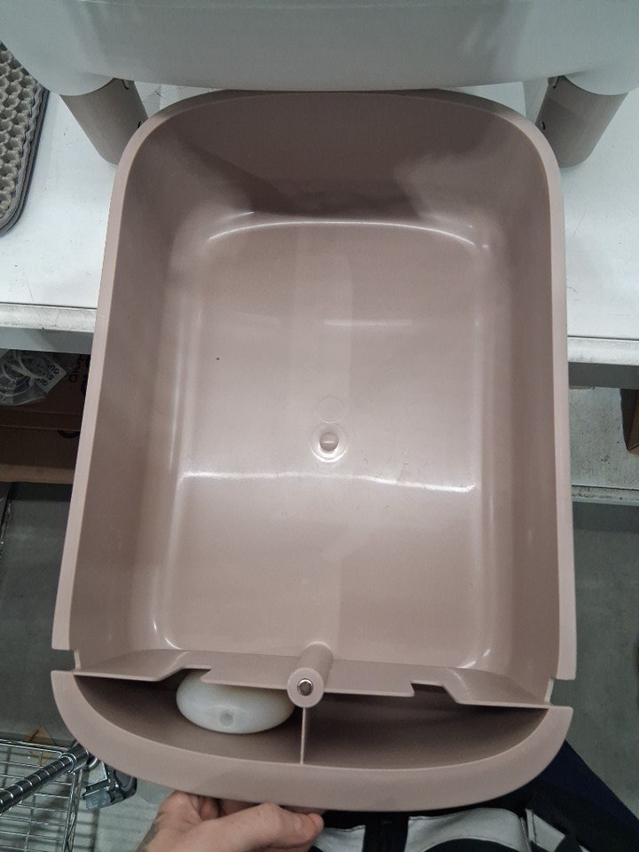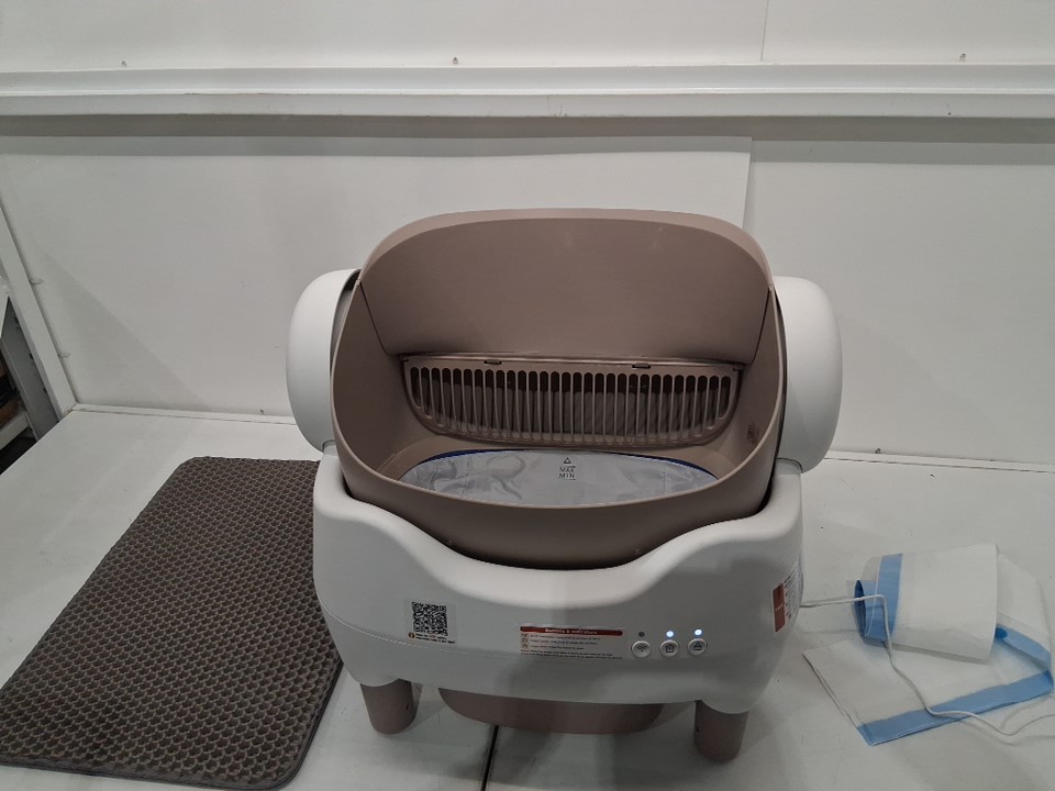 Litter box has a yellow discoloration stain from previous use, has been tested for power and functionality