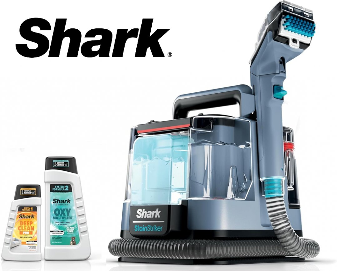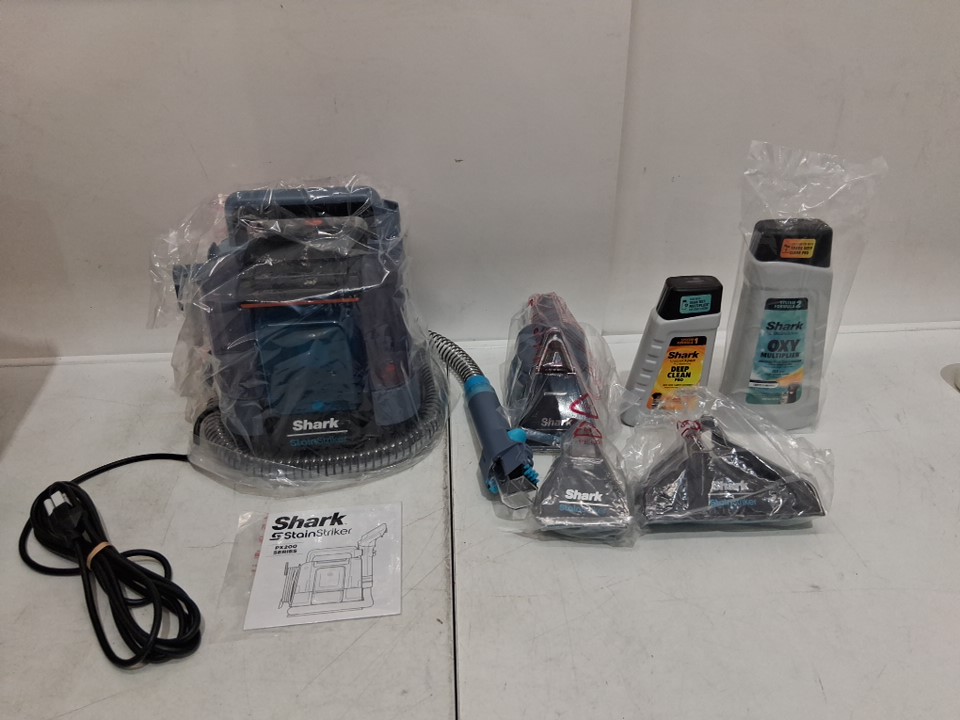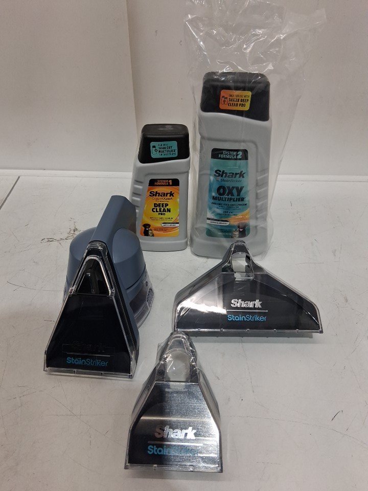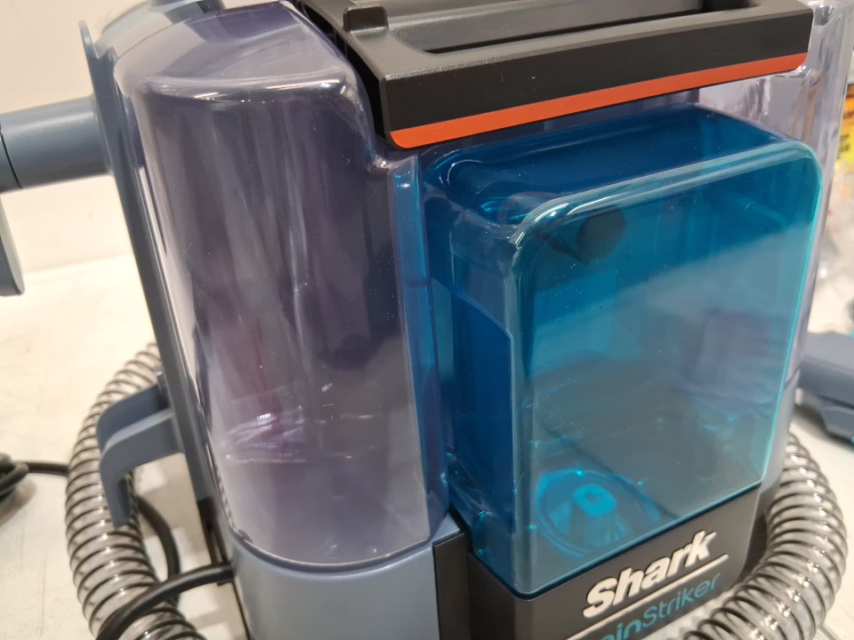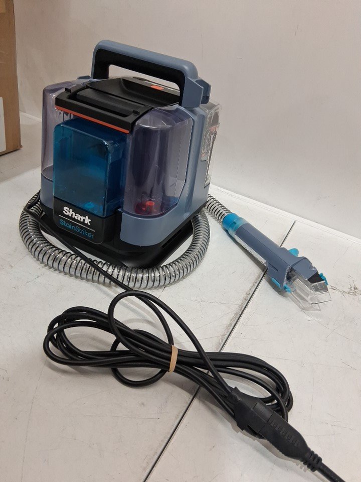 SHARK STAINSTRIKER PORTABLE CARPET CLEANER & UPHOLSTERY CLEANER with cleaning solutions for pets - BLUE/GREY (MODEL: p202brn v5)
