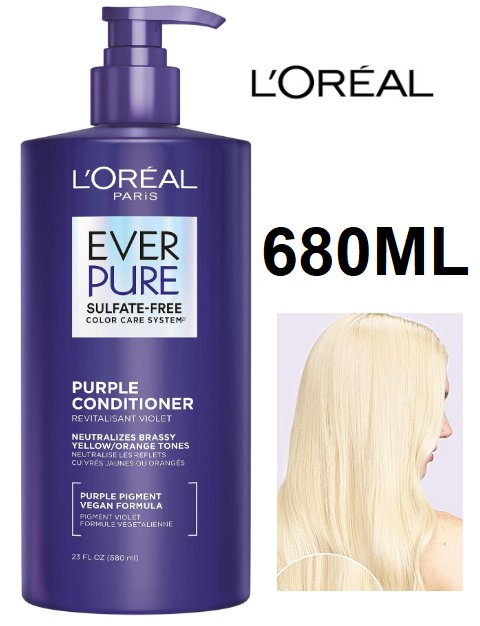 l'oreal paris ever pure purple shampoo - sulfate free, neutralizes brassiness -680ML