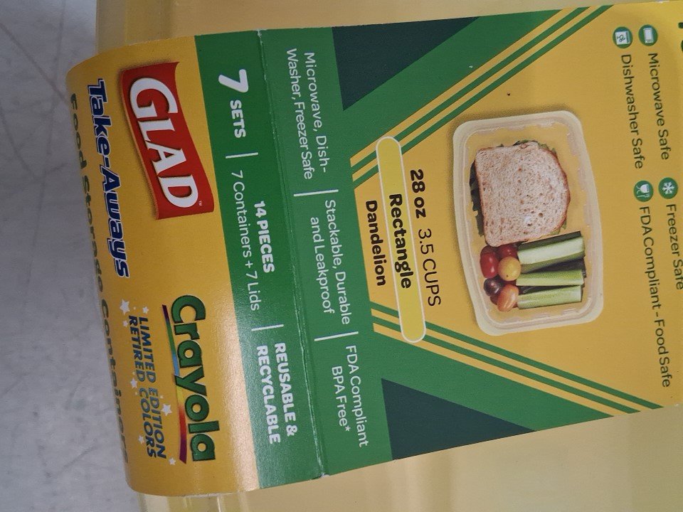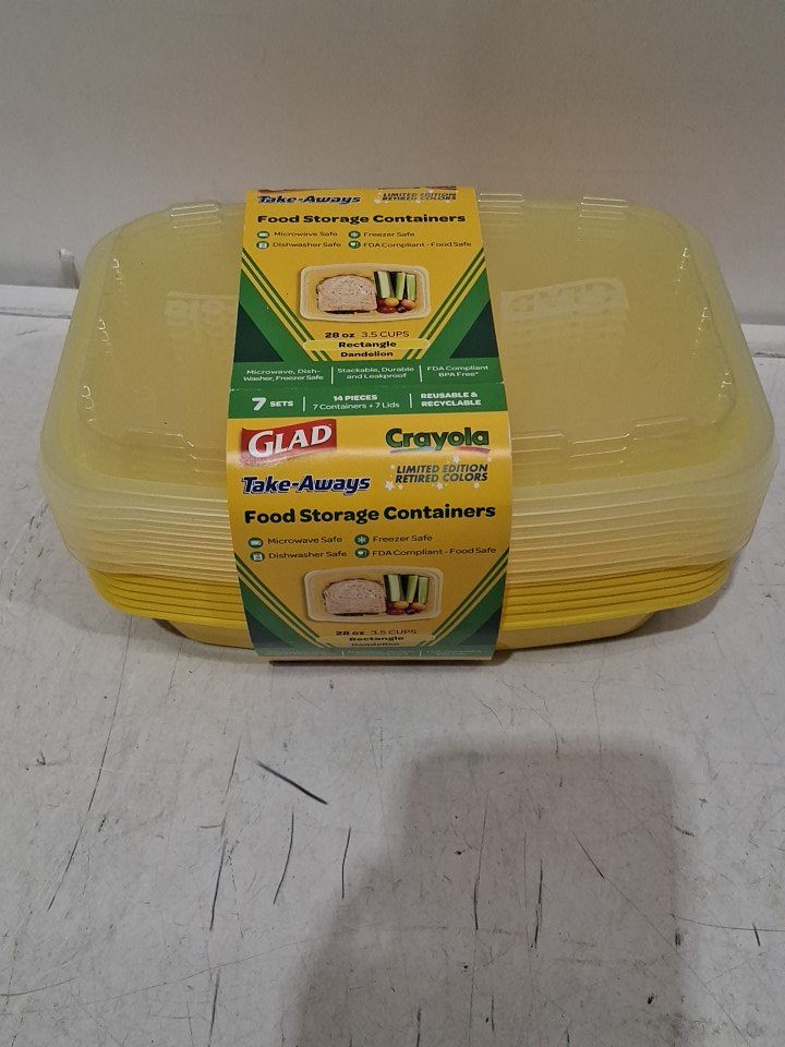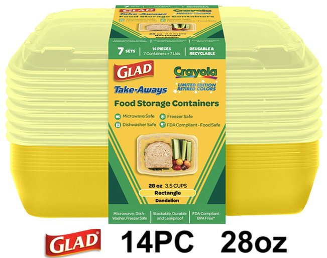 14pc GLAD CRAYOLA FOOD STORAGE CONTAINERS - 28OZ - yellow