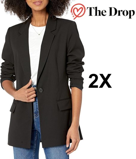 Women's The Drop Blake Long Blazer - 2X - Black - (Style: SNK500A-Black)
