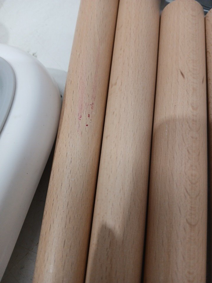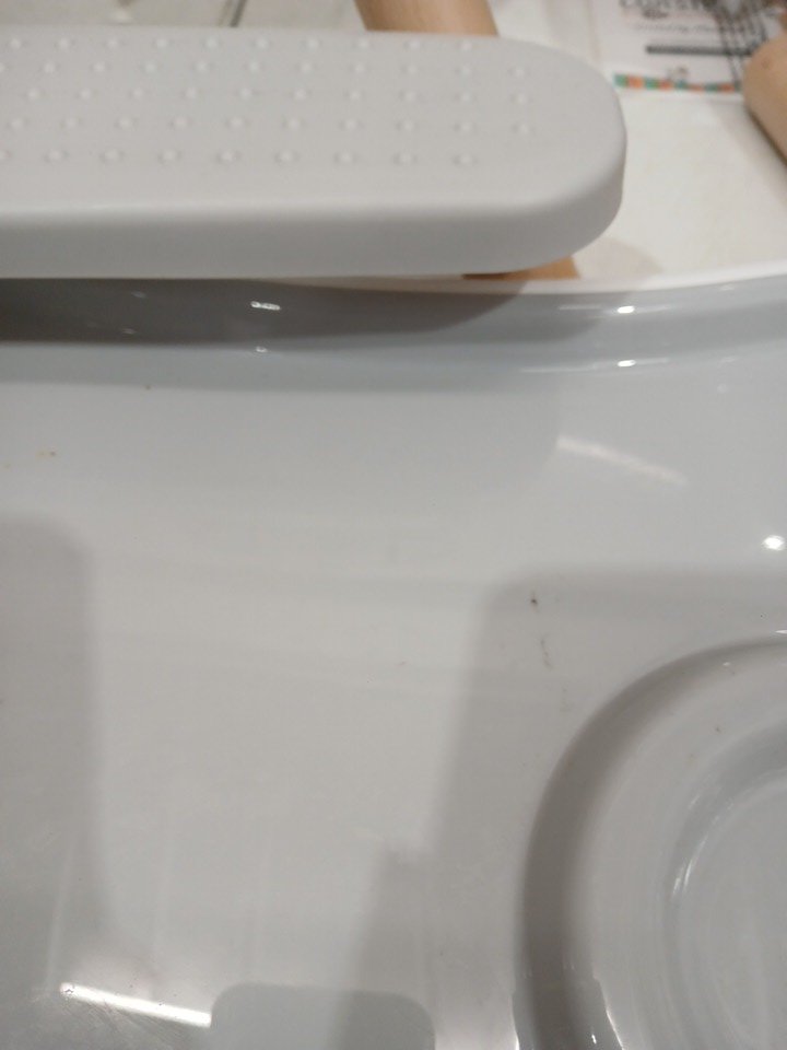 Has some food residue and scuffing on the surface of parts.