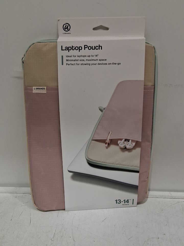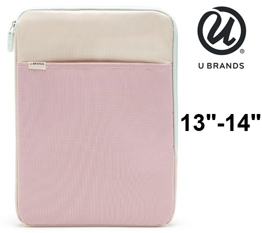 U BRAND FABRIC LAP TOP POUCH - 13" -14" - PINK/BEIGE