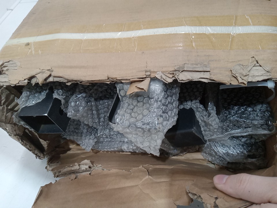 Some scuffs on some of the pieces, likely from shipping/handling as the package is heavily distressed on the ends and have ripped open during handling.