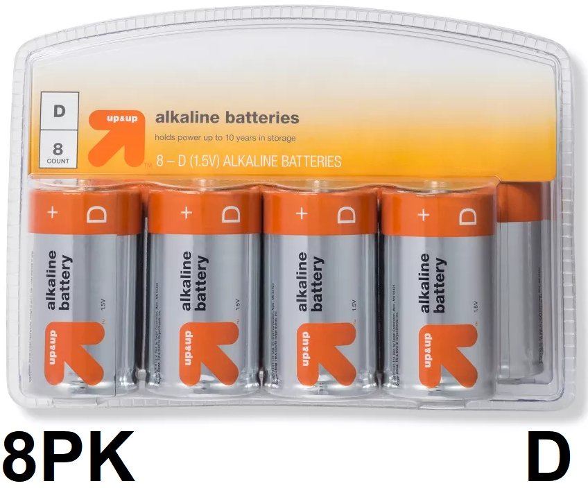 8PK UP&UP SINGLE USE HOUSE alkaline BATTERIES - D