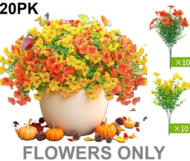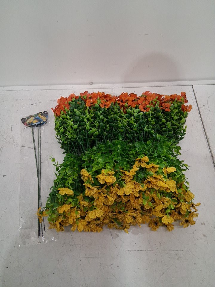 20PK Artificial Flowers for Outside with 6 faux butterflies - Orange/Yellow