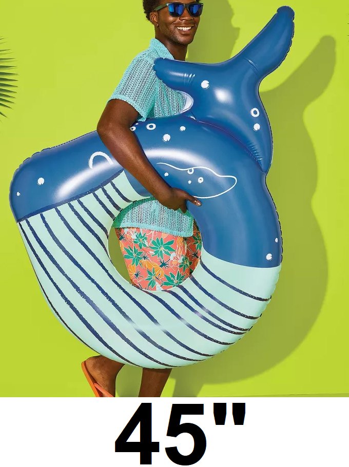 Sun Squad Inflatable Whale Tube Water Float - 45" - BLUE