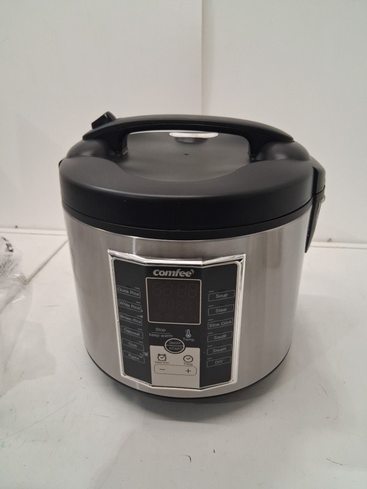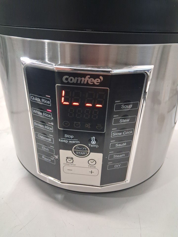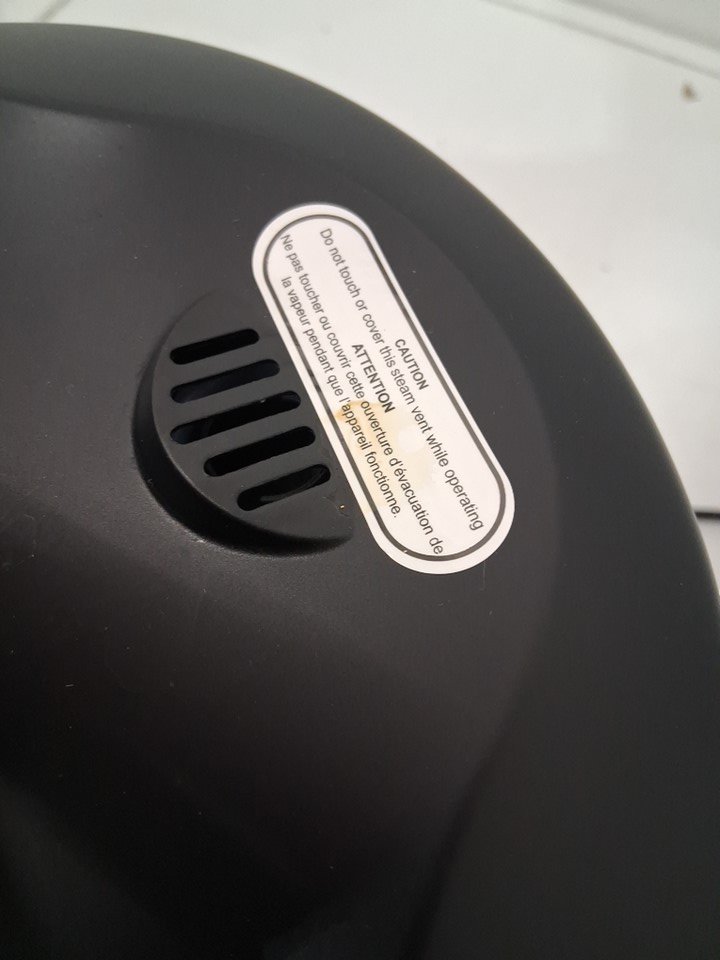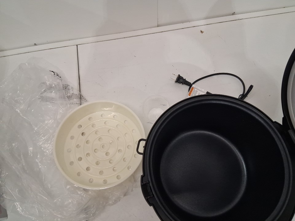 Note: cooker looks unused, however sticker on lid has a small discolored stain