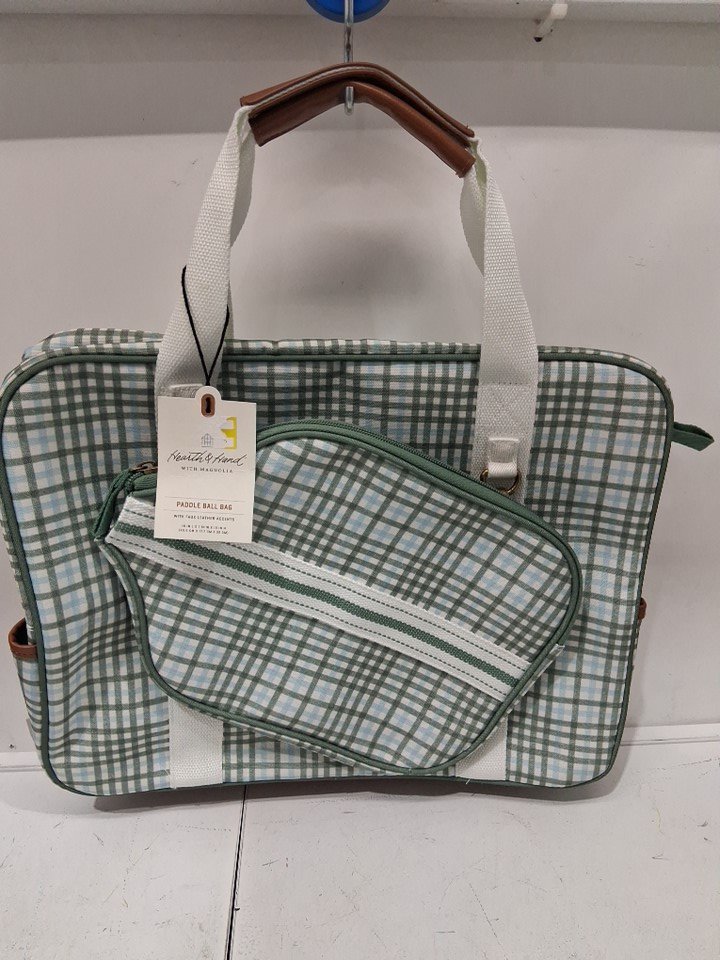2PC hearth & hand Plaid Pickleball Bag & Paddle Cover set - green / blue