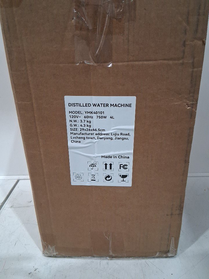 VEVOR WATER DISTILLER WITH PLASTIC CONTAINER - 750W - 4L - WHITE (MODEL: YMK40101)