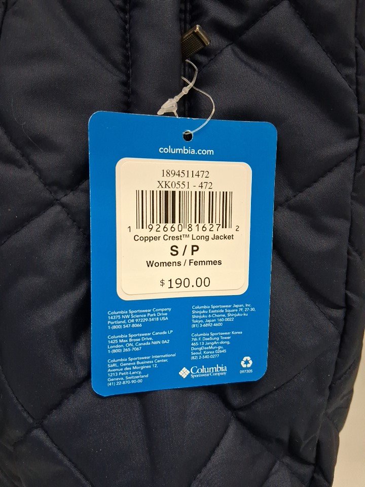 WOMEN's Columbia Copper Crest Long Jacket Insulated Jacket - Small - Dark Nocturnal Blue - (Style: XK0551 - 472)