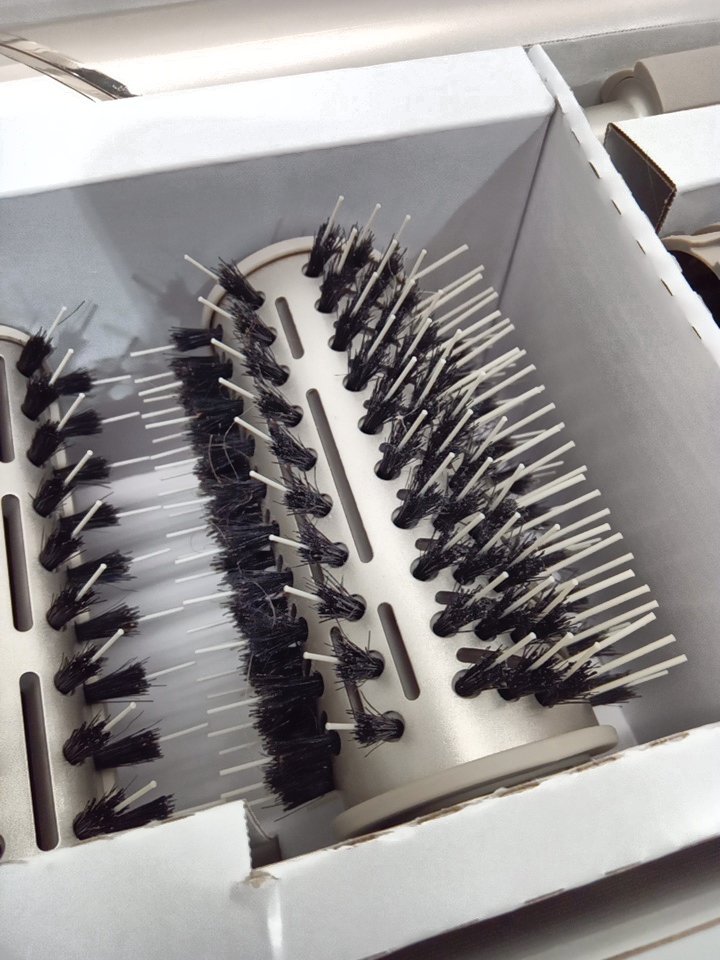 brush attachment have been used and hair on it and bristles bent out, see photo