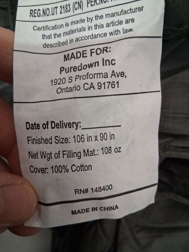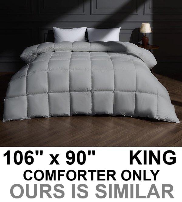 PUREDOWN 100% COTTON GOOSE FEATHER COMFORTER - 106" X 90" - KING - GREY