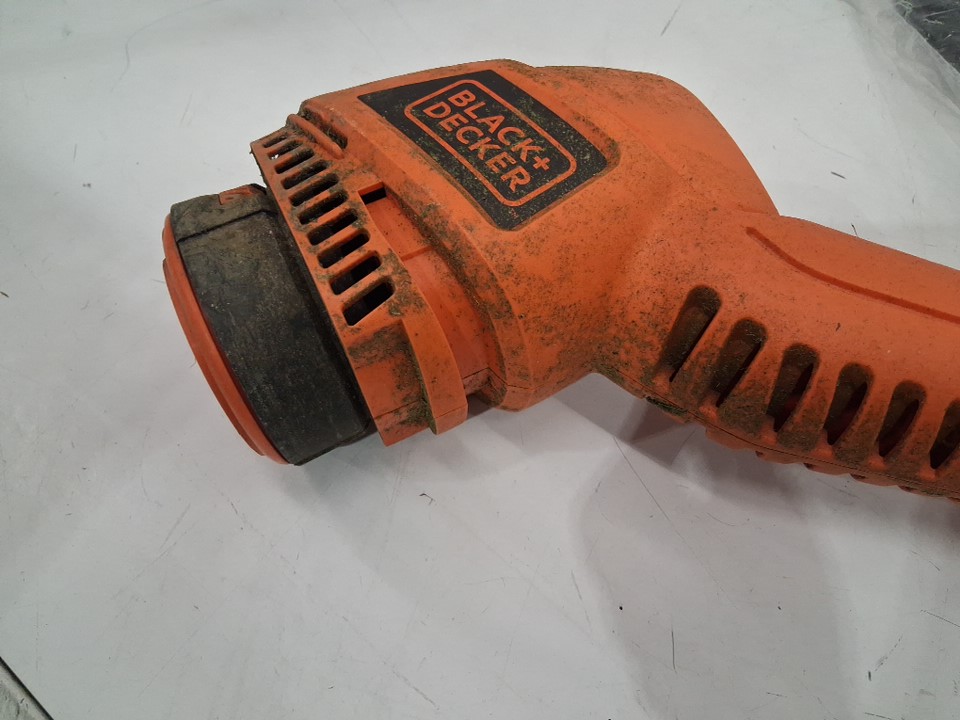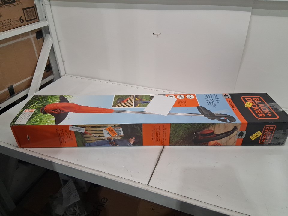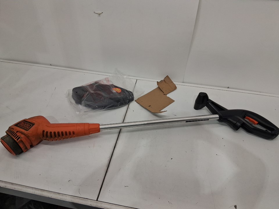 Head of weed whacker has visible grass debris on it. Guard is sealed. Has been tested (no indicator light)