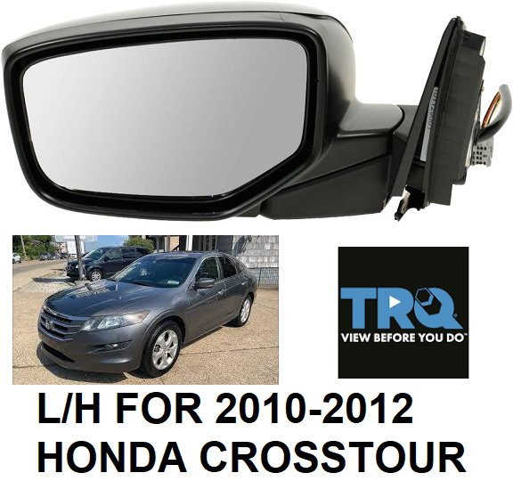 TRQ POWER HEATED SIDE MIRROR - LEFT HAND - FIT FOR 2010-2012 HONDA CROSS TOUR - BLACK - (model:mra06186)