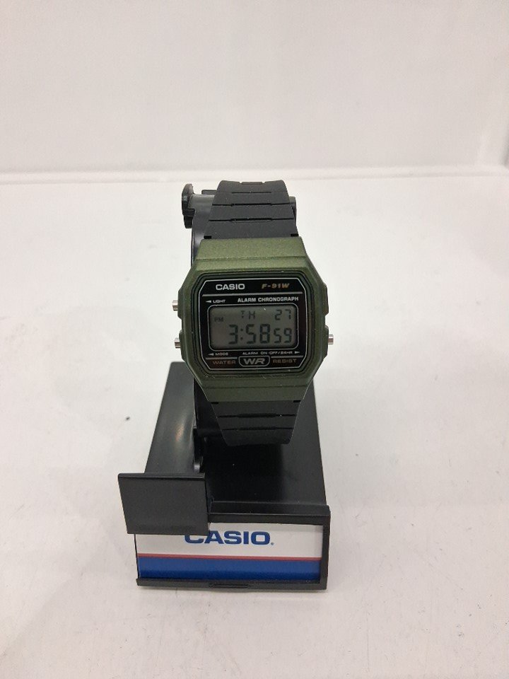 MEN'S CASIO VINTAGE CASUAL WATCH WITH RESIN STRAP - 35.5MM - BLACK/GREEN (MODEL:F-91WM-3ACF)