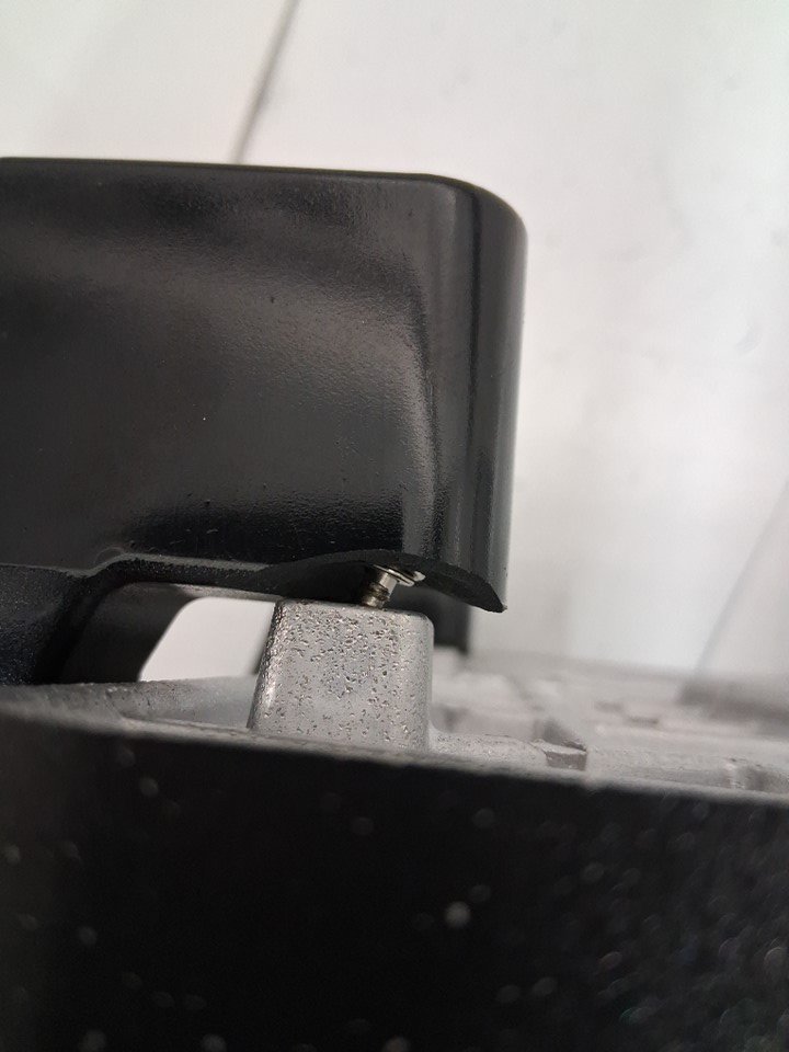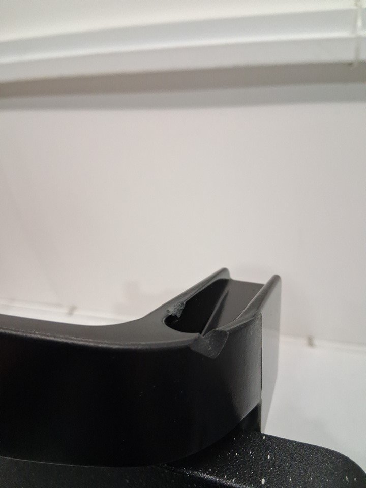 Some plastic is broken off of the back left leg (see photos) still sits level