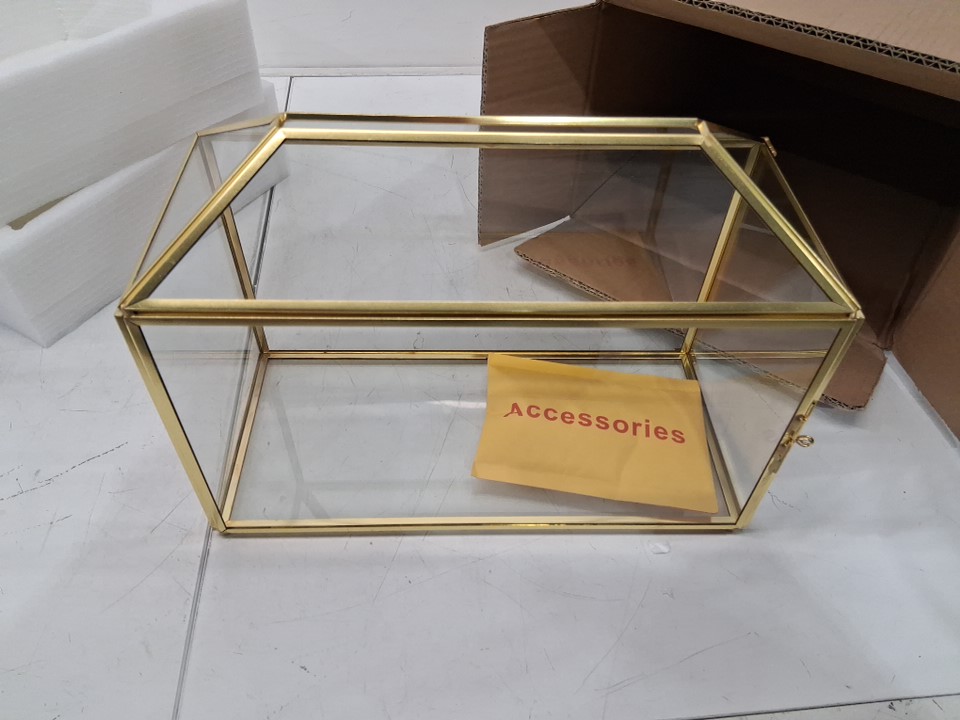 NCYP Geometric Glass Cards Box with Slot and Lock for Wedding Reception, Party Decor - 12.6" x 5.9" x 9" - Gold