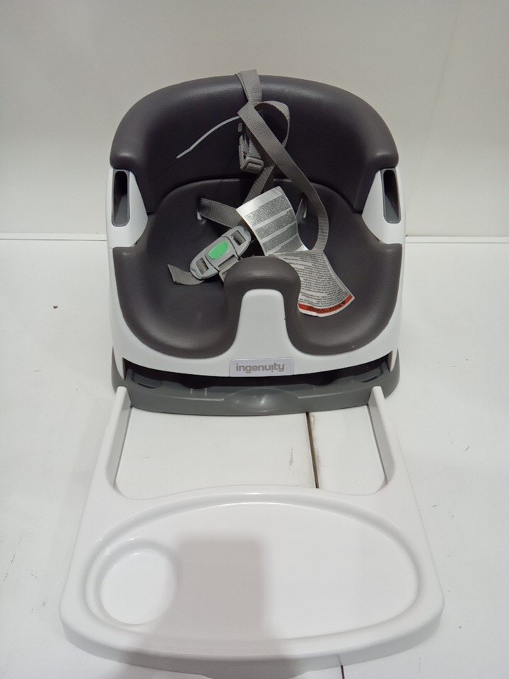 INGENUITY BABY BASE 2-IN-1 BOOSTER SEAT WITH FOOD & DRINK TRAY - 50LBS CAPACITY - WHITE/SLATE GREY (MODEL: 11576)