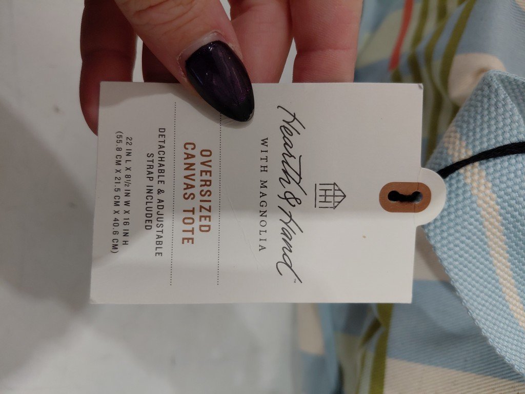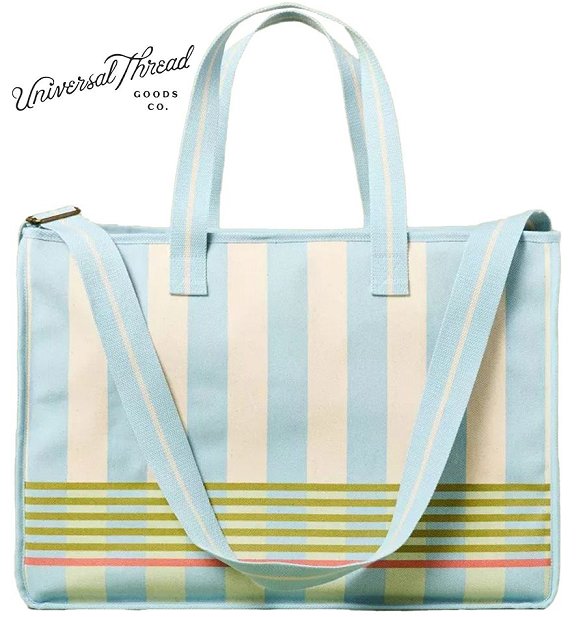 universal threads OVERSIZED canvas tote bag - blue/green/beige stripe