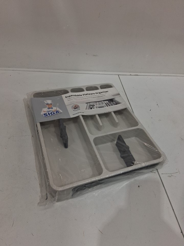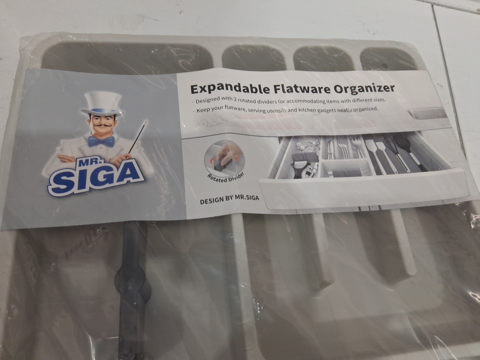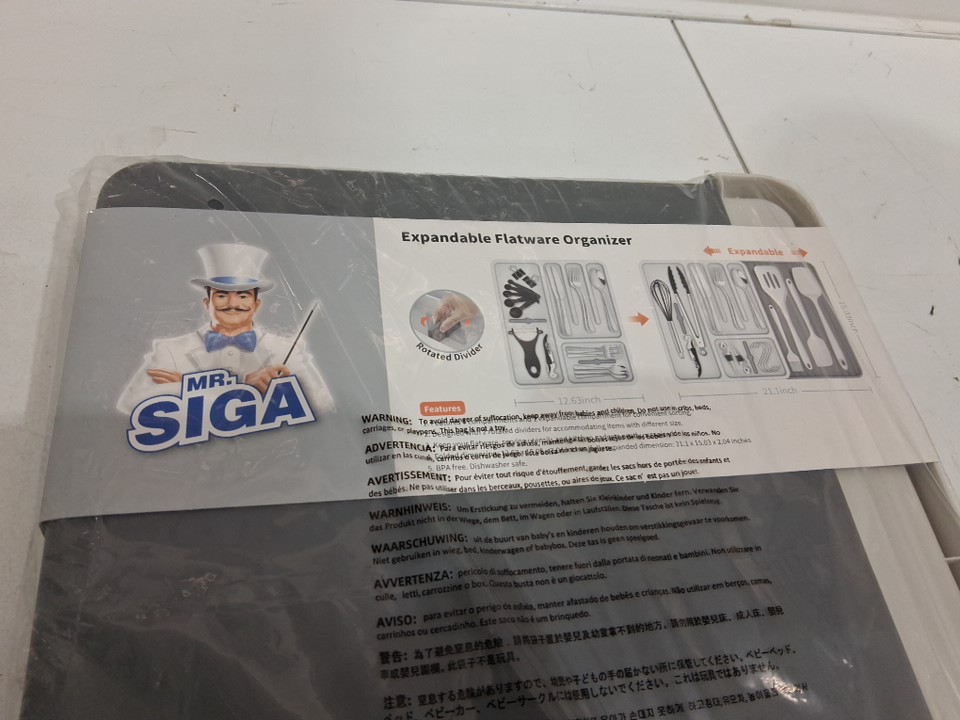MR.SIGA Expandable Silverware Organizer - 12.7" x 15" x 2.05" - White/Gray - (Model: ‎SJ21860)
