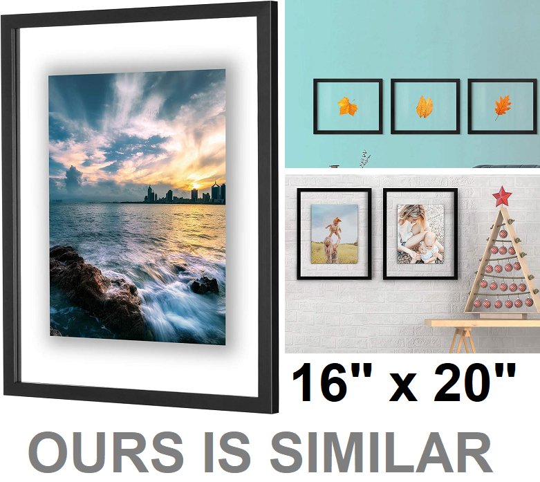 nfw double glass sided floating picture frame for walls - 16" x 20" - light wood