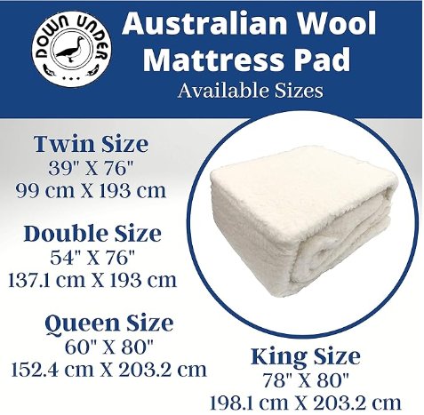 DOWN UNDER Pure Wool Mattress Pad all season underlay - 100% Australian Wool Fleece - QUEEN
