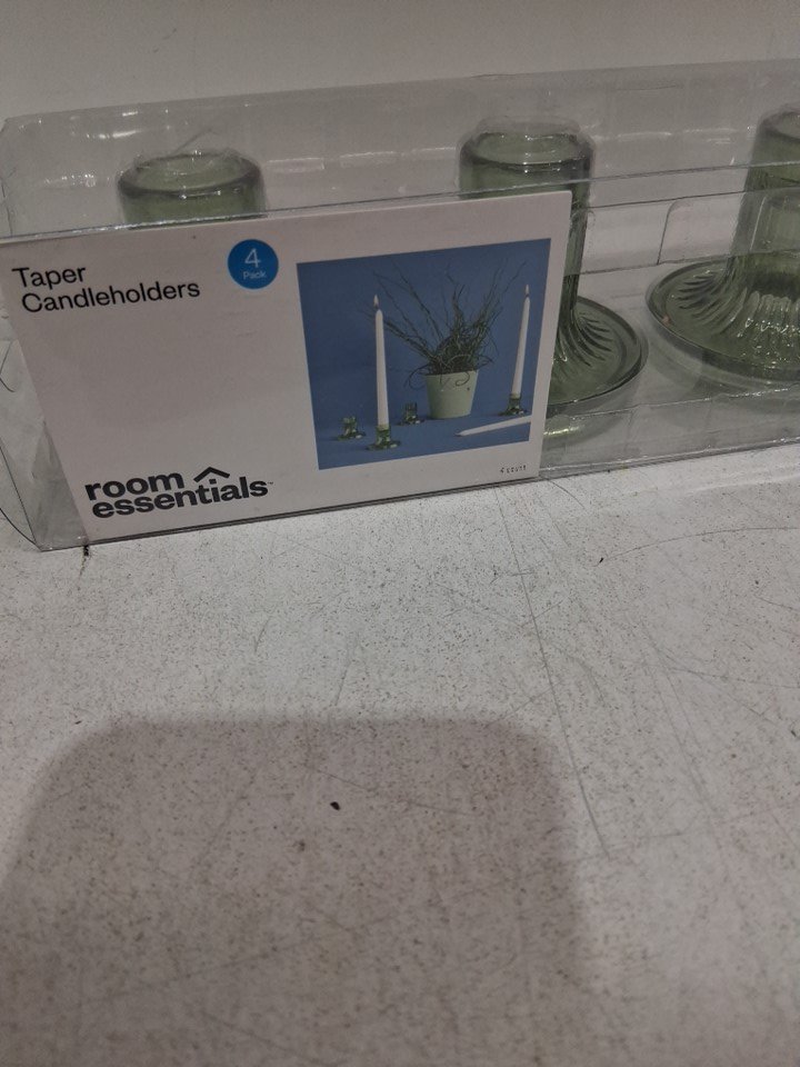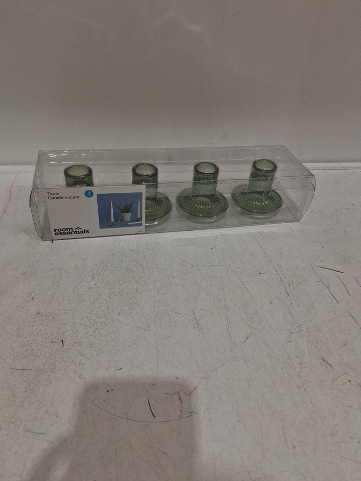 4PK ROOM ESSENTIALS TAPER CANDLE HOLDERS - GREEN