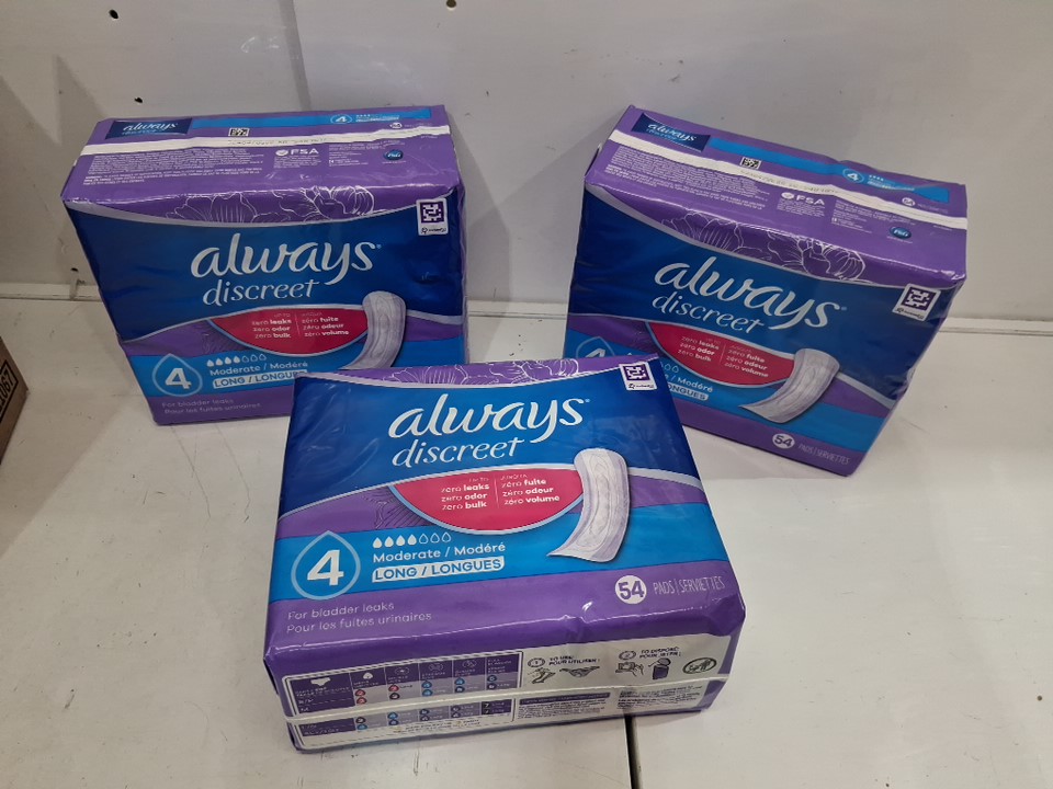 (X2) 54PK WOMENS Always Discreet Incontinence Pads - MODERATE - (MODEL:PG-6854)