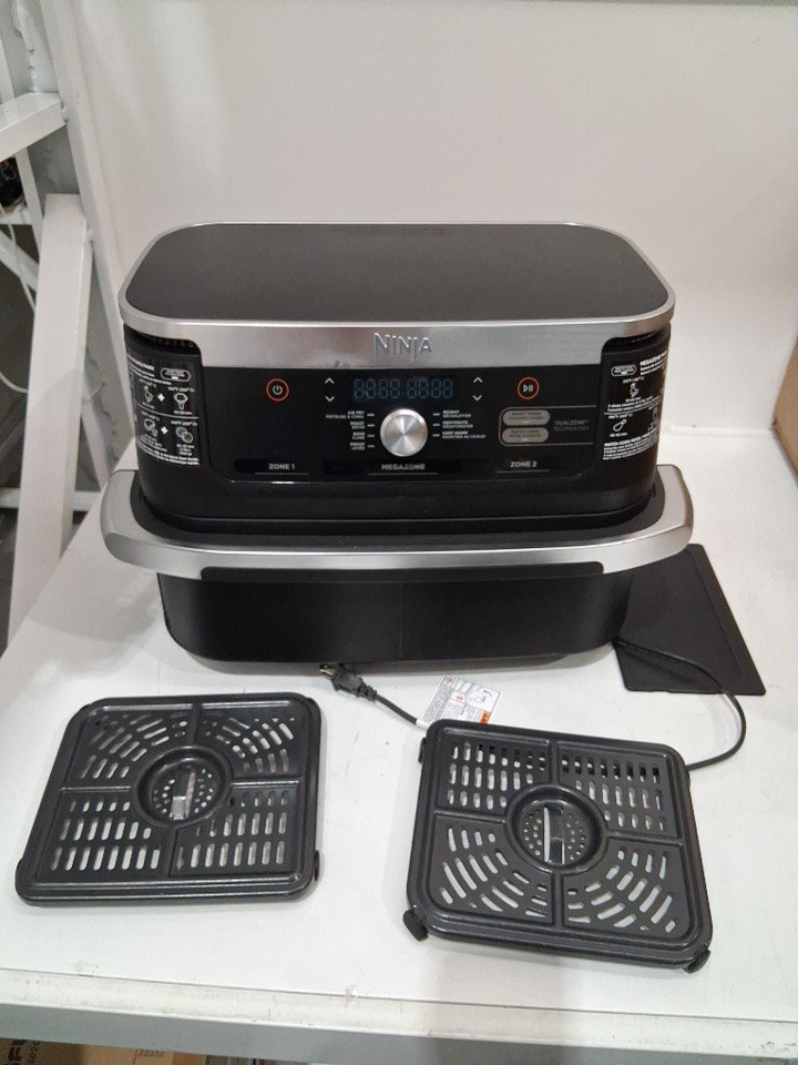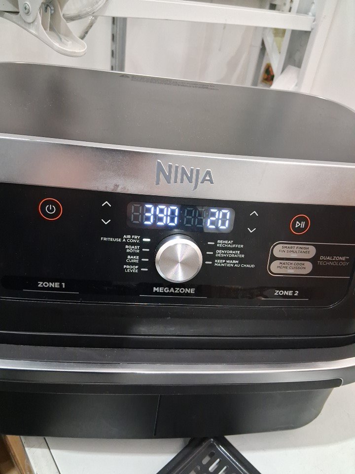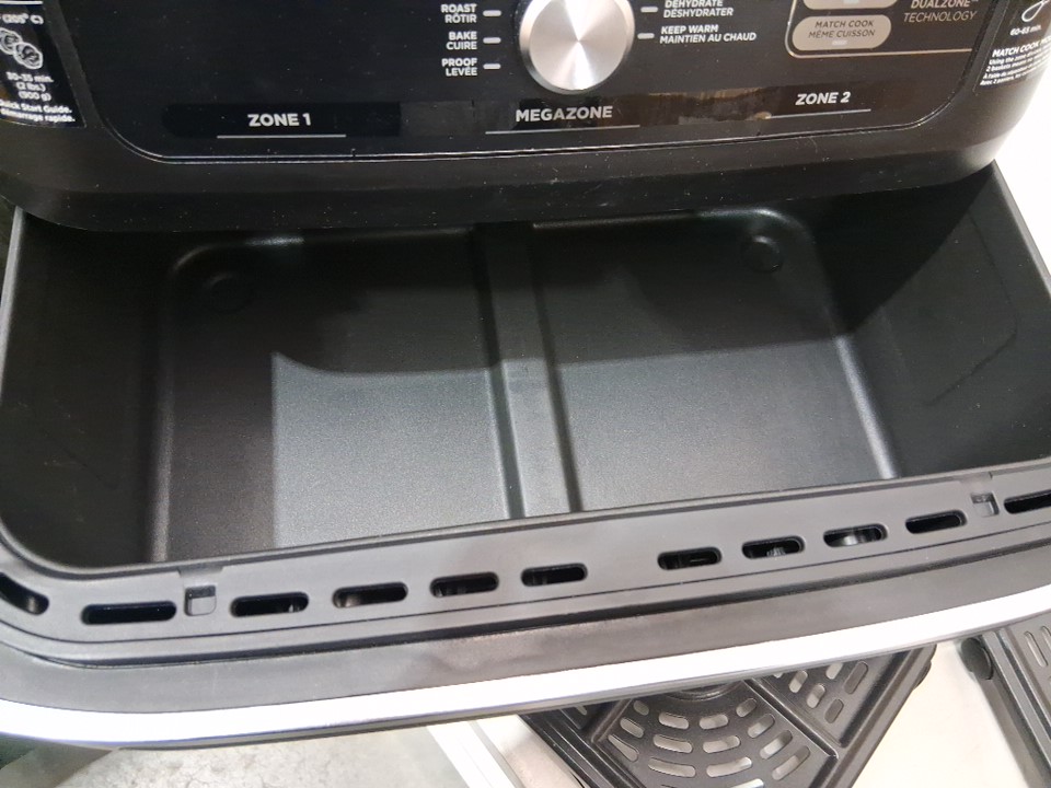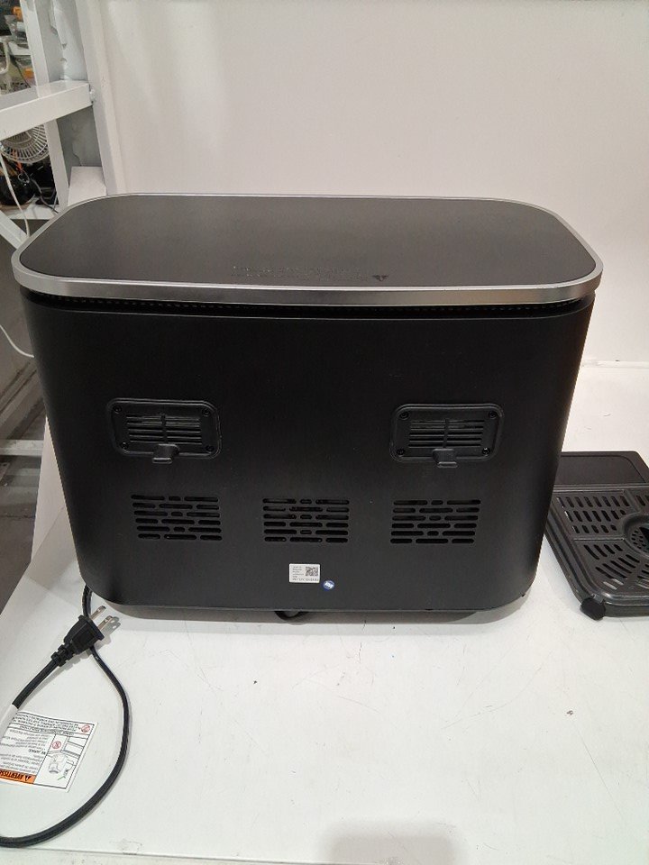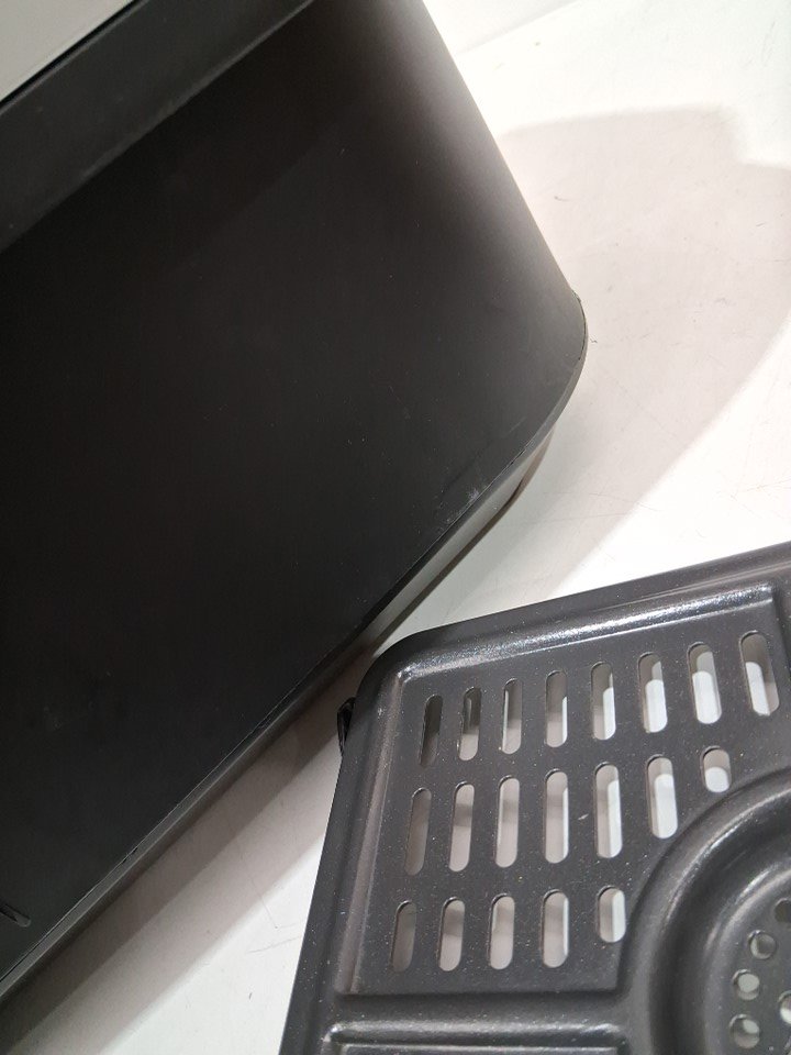 tested for basic power only. there is some light scuff marks on the front baskets. as well a some marks near the ninja logo. scuffs and wear on the bottom of the fryer as well.
