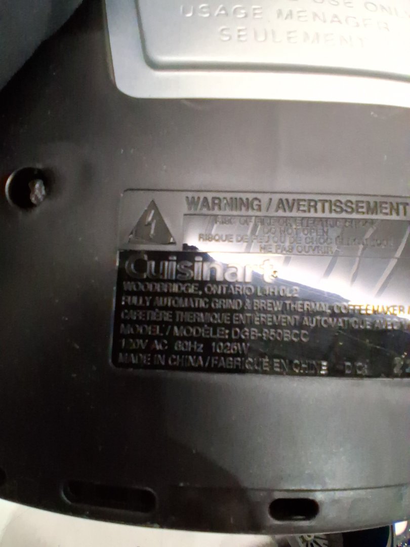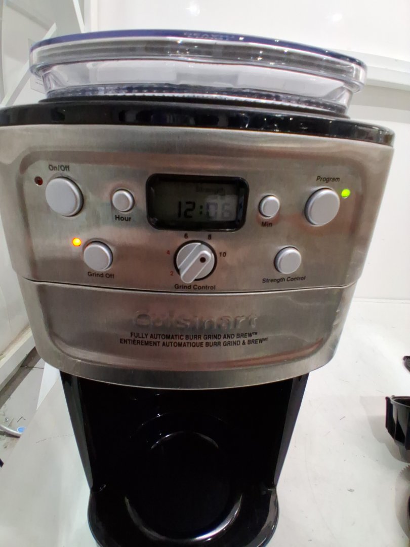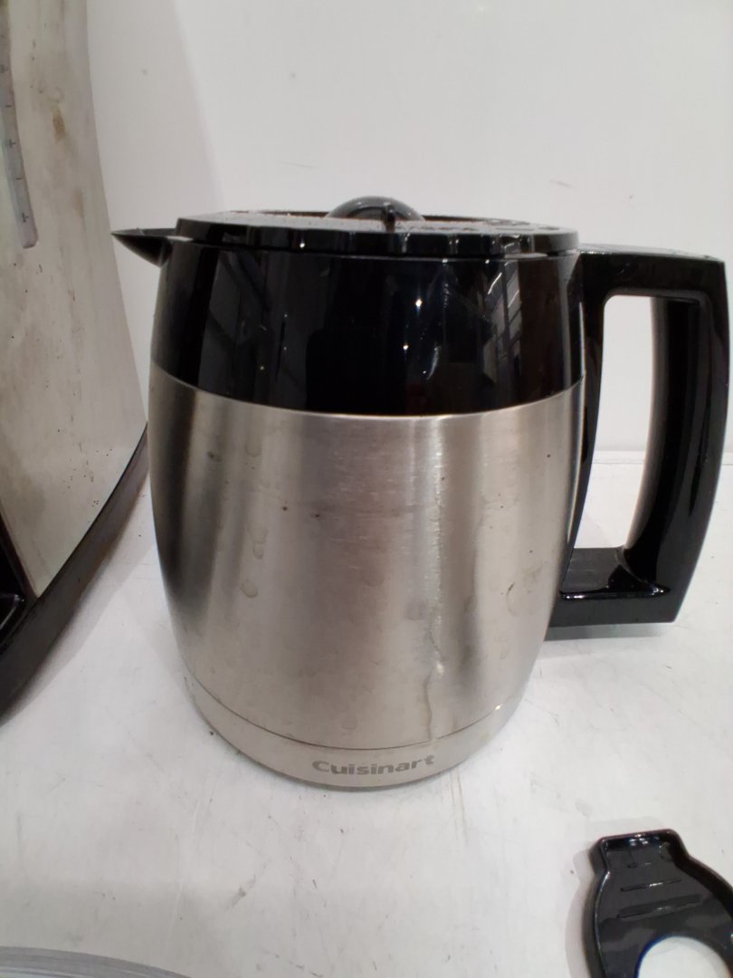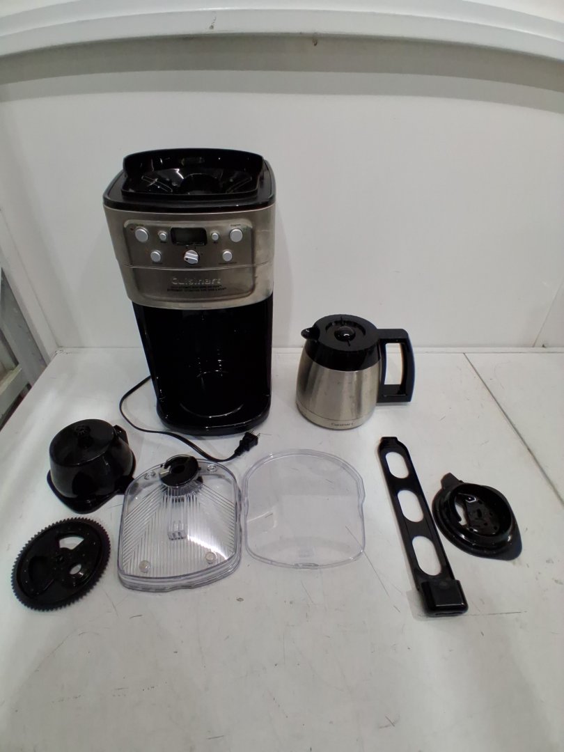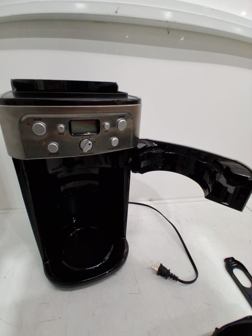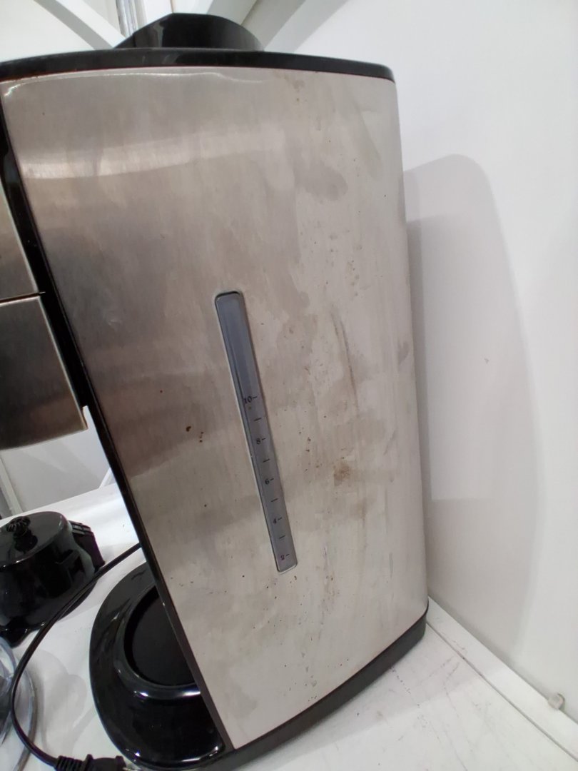 Missing coffee filter part (Replaceable) and majority of the items have coffee stains on them from previous use. Tested for power.
