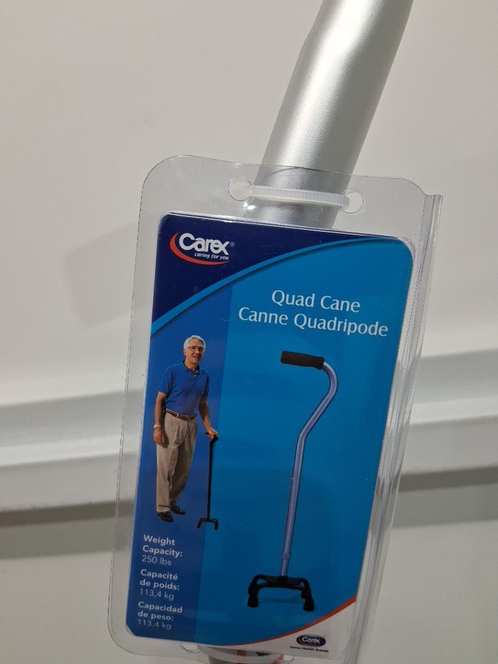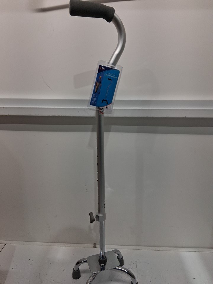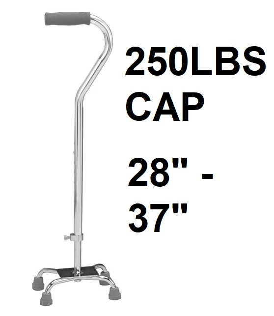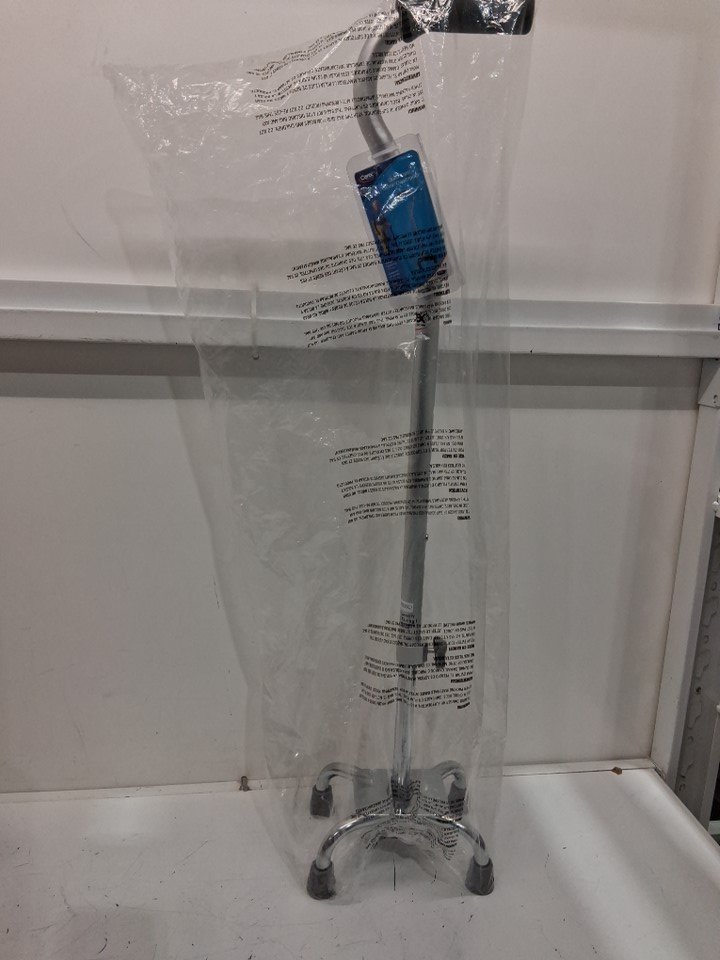 Carex small base offset quad cane - 250lbs cap - 28" to 37" - Silver/grey (Model: a734c0)