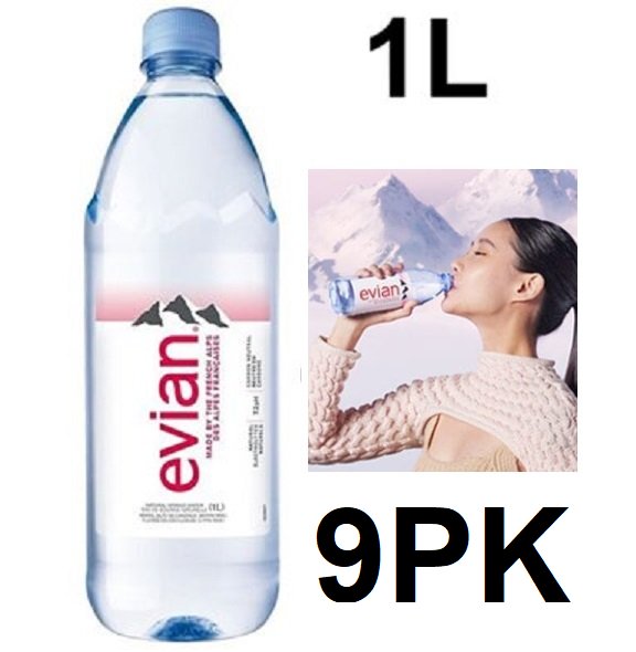 9PK EVIAN NATURAL SPRING WATER BOTTLES - 1L/EACH