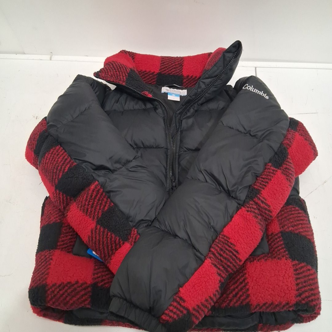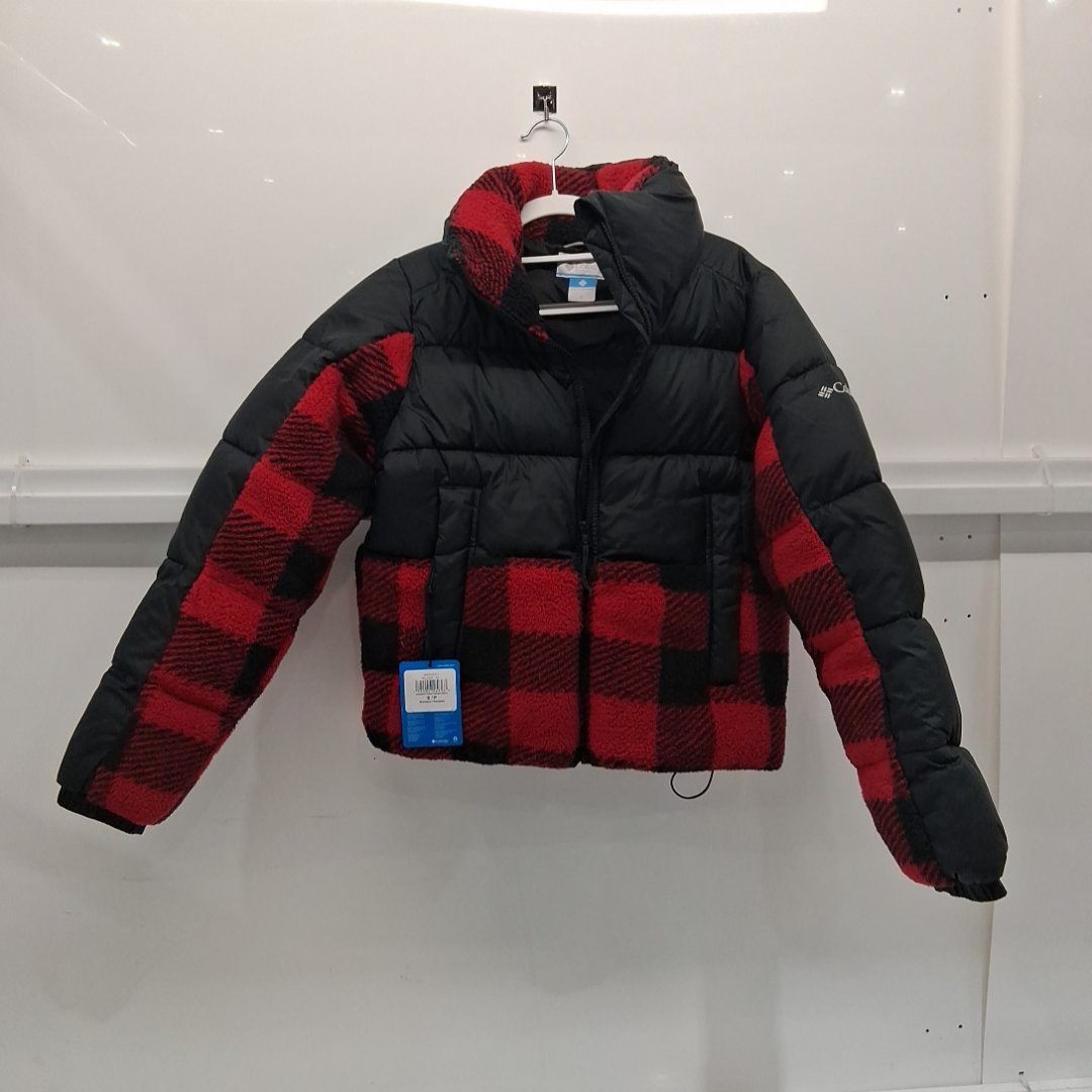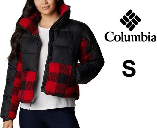 women's columbia leadbetter point sherpa hybrid jacket - small - black/red buffalo plaid (style: 1955241011/WL3255))