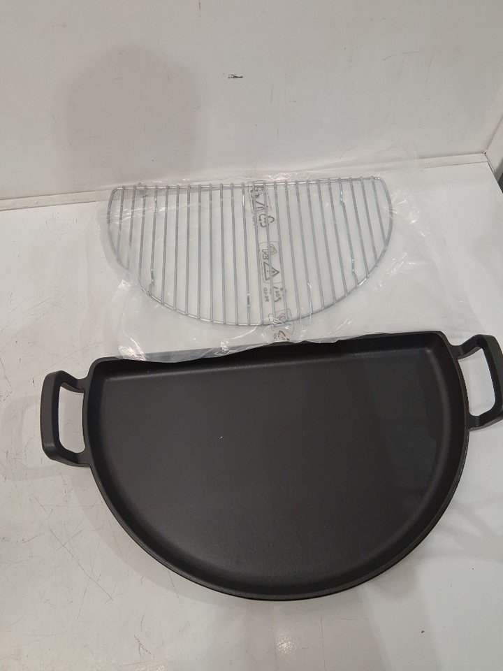 SafBBCUE Cast Iron Half Moon Griddle Pan For 22' Grills - 11" x 17.4" - Black (Model: CL420)