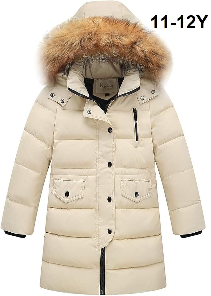 GIRLS AMPROI Winter Puffer Jacket WITH FUR HOOD - 11-12 YEARS - BIEGE