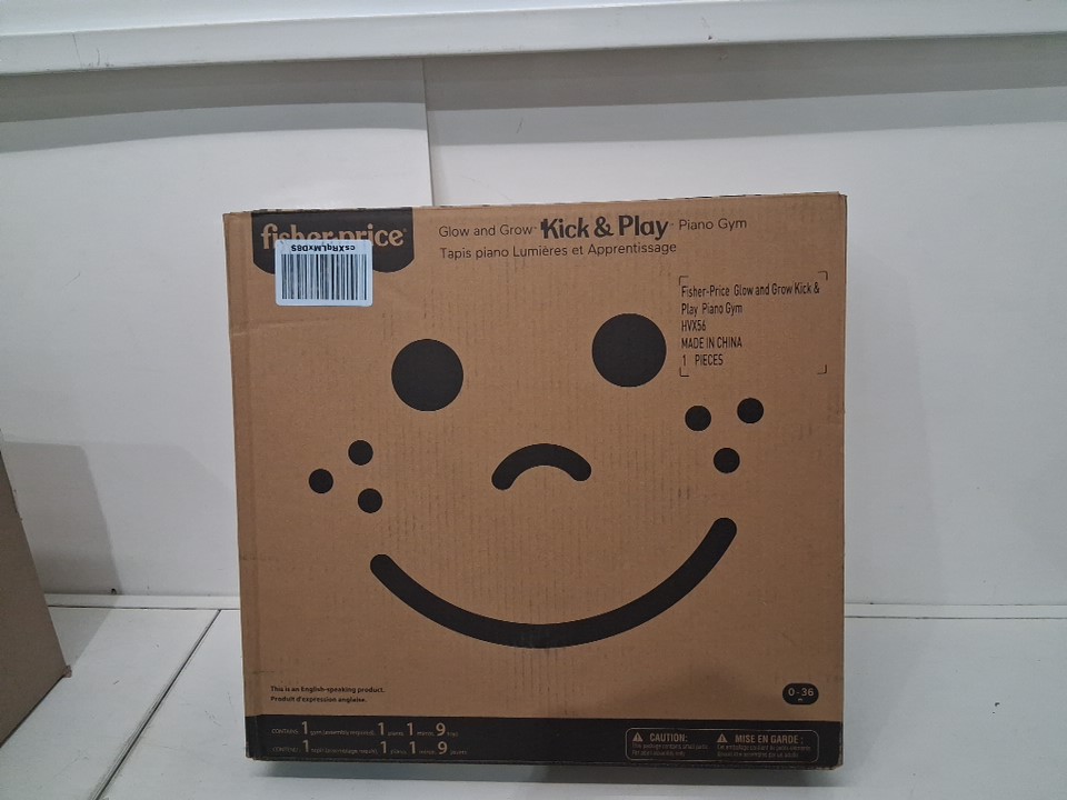 Fisher-Price 4-in-1 Baby Musical Glow and Grow Kick & Play Piano Gym Playmat - Ages 0+ Months - Blue (Model: Hvx56)