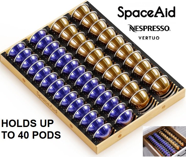 SPACEAID BAMBOO Coffee Pod Holder Drawer Organizer for Nespresso Vertuo Capsule- HOLDS UP TO 40-