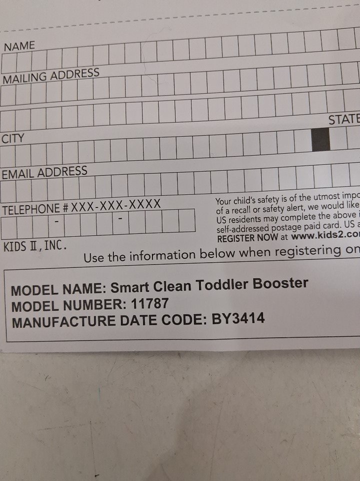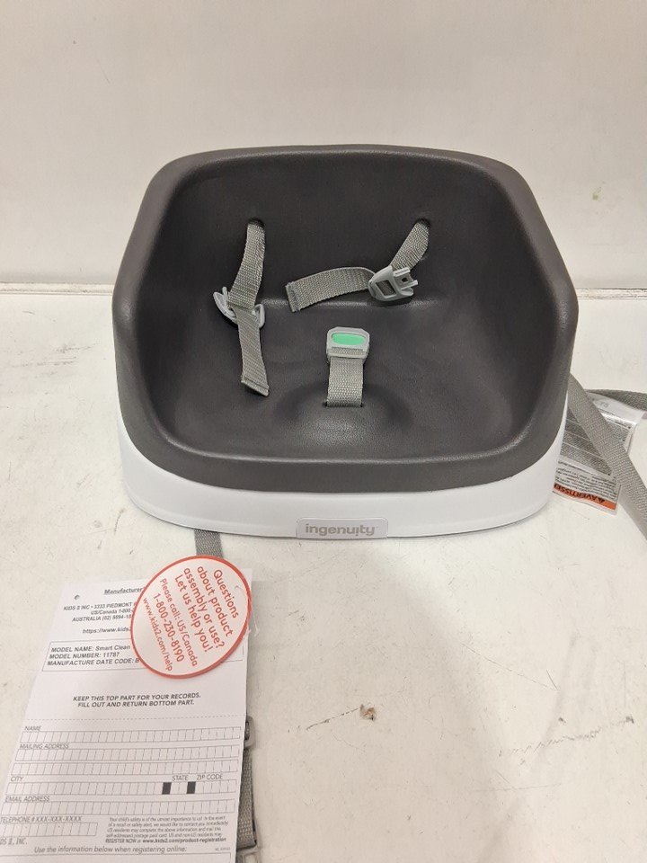 INGENUITY SMARTCLEAN TODDLER BOOSTER SEAT - 33LBS CAPACITY - WHITE/SLATE GREY (MODEL: 11786/11787))