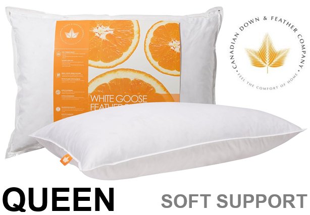 Canadian Down & Feather Co. Soft Support White Goose Feather Pillow - Queen Size (20" x 30") - WHITE (MODEL: 32226)