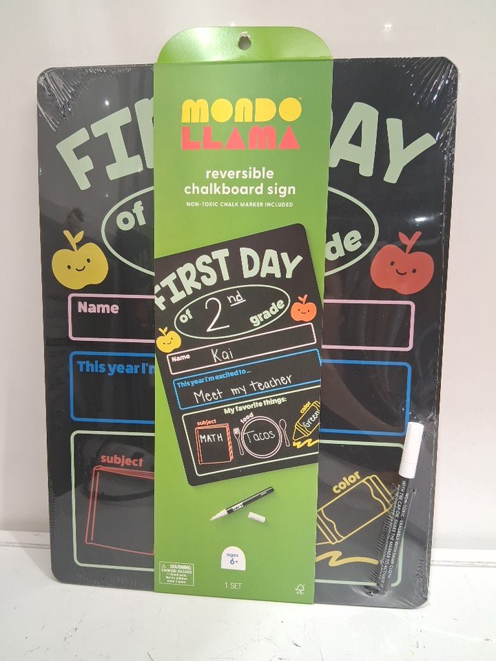 mondo llama reversible First AND LAST Day of School Chalk Marker Sign - 12" x 16"