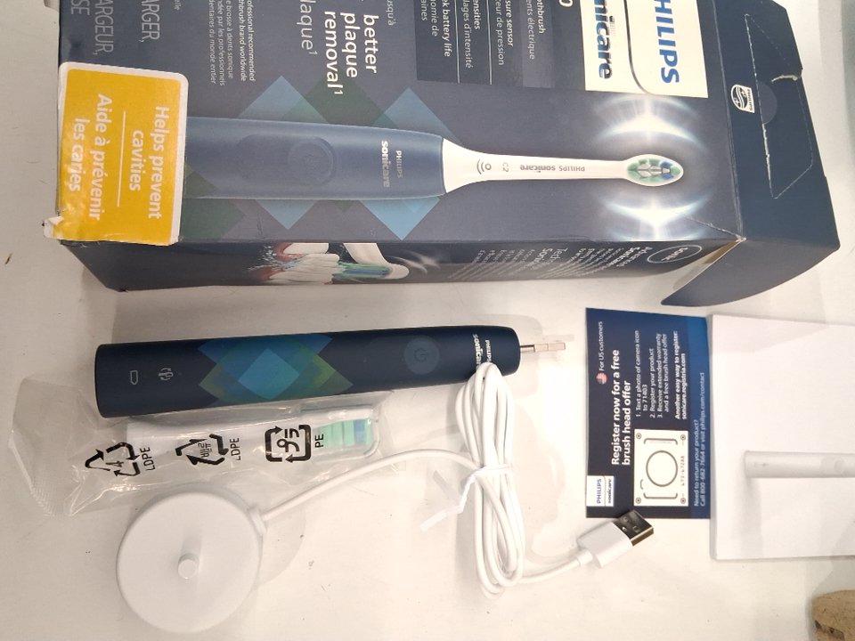 philips sonicare 4100 protective clean plaque control electric toothbrush - prismatic malibu/navy (model: hx3689/22)