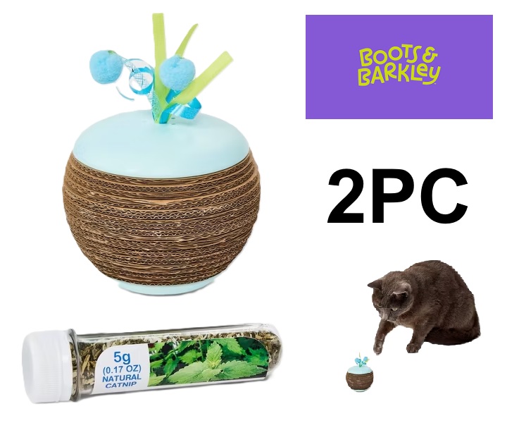 2PC Boots & Barkley Stacked Corrugate Cat Toy With Natural Catnip - 6" x 4" - Blue/Brown