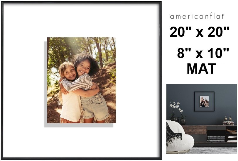 Americanflat Floating Picture Frame with Polished Plexiglass, 8" x 10" Frame with Mat or Display 20" x 20" Photos Without Mat-black