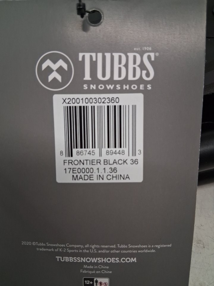 Men's Tubbs Frontier 36 Aluminum Frame Snowshoe - 36" For 220LB-300LB - Black (Model: X200100302360)