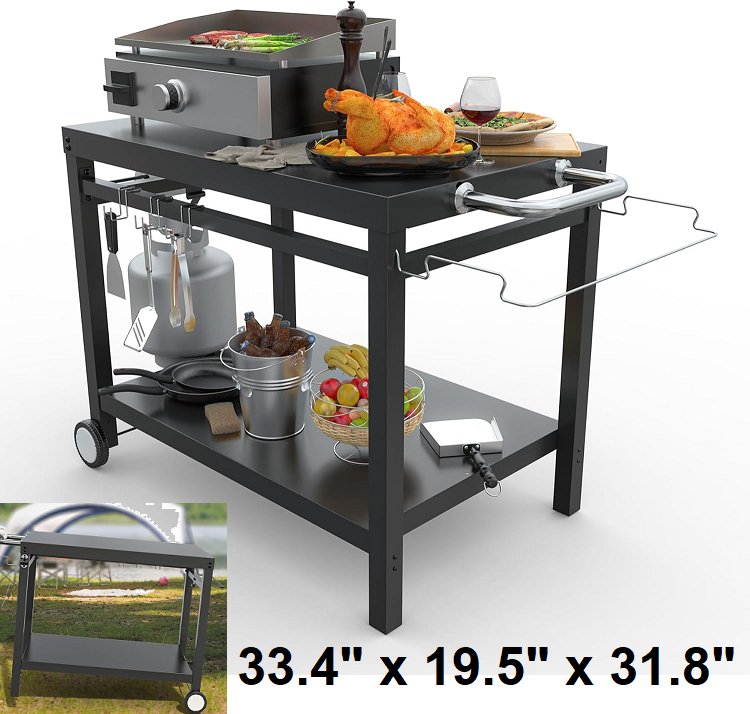 Outdoor Portable Grill Table Cart Universal BBQ Stand - 33.4" x 19.5" x 31.8" - black