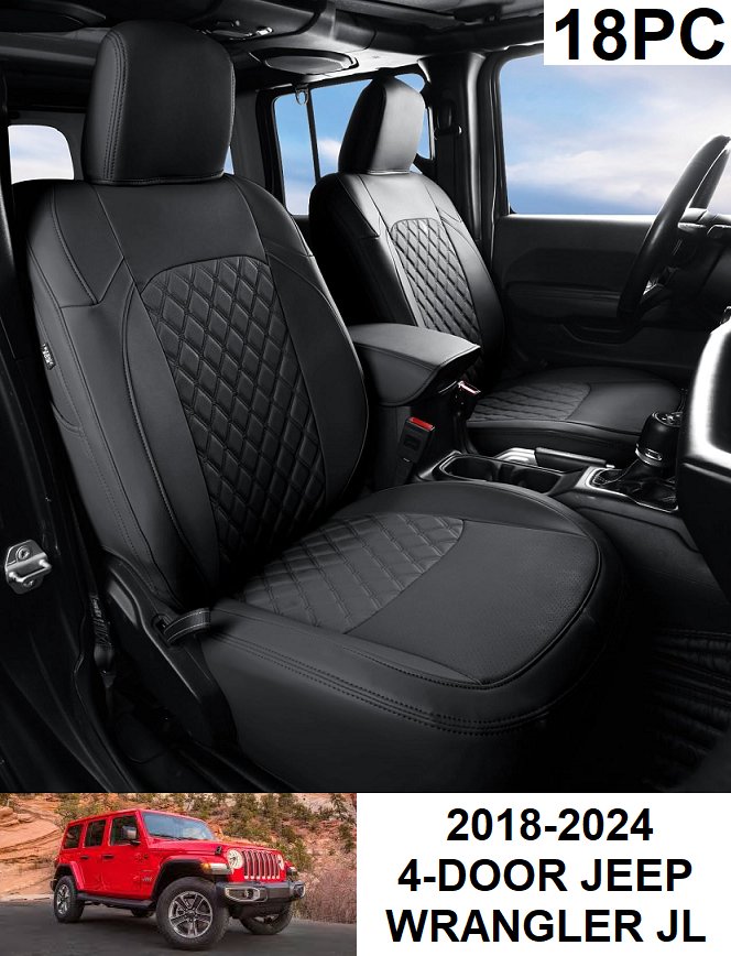 18PC GIANT PANDA FAUX LEATHER SEAT COVER SET FOR 2018-2024 JEEP WRANGLER JL - BLACK