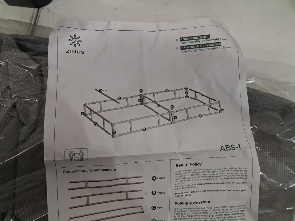 ZINUS METAL BOX SPRING FRAME WITH COVER - TWIN - BLACK - (MODEL: zu-abs-5ts)